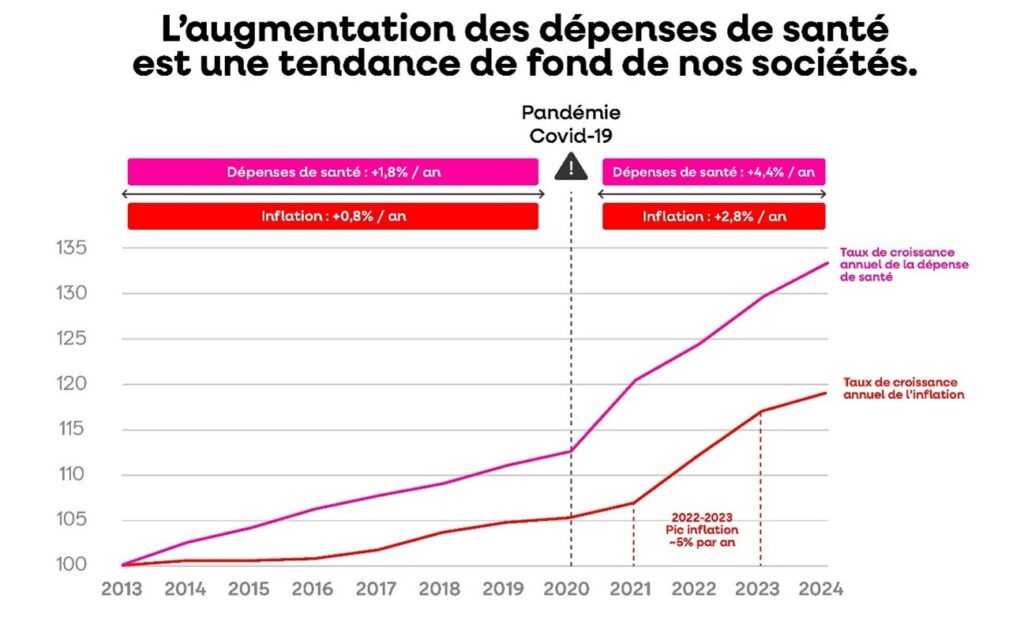 Depuis quinze ans, les dépenses de santé augmentent continuellement de façon structurelle. «Après une hausse moyenne de 1,8% par an entre 2013 et 2020, l’augmentation s’intensifie depuis 2020 : +4,4% par an, soit + 22% en 5 ans », fustige la Mutualité Française dans un communiqué de presse qui dénonce également de nouvelles taxations.